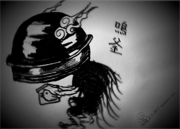I drew my version of narigama, based on the painting by Sekien Toriyama.