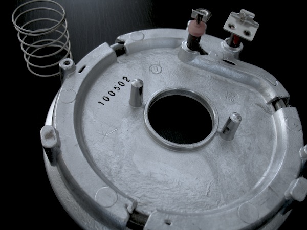 3枚目の写真の部品(と内釜)が、形見となりました。ばねは何かと役に立つし、金属の分厚い円盤みたいなのは、「カン!」とどこかわびしい音を鳴らします。