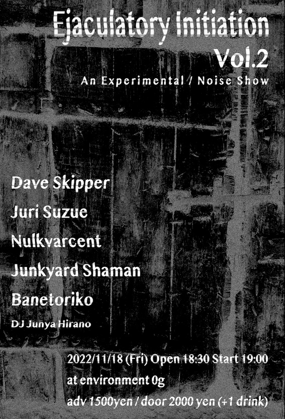 open 18:30 / start 19:00 adv 1500yen / door 2000yen (+1 drink)